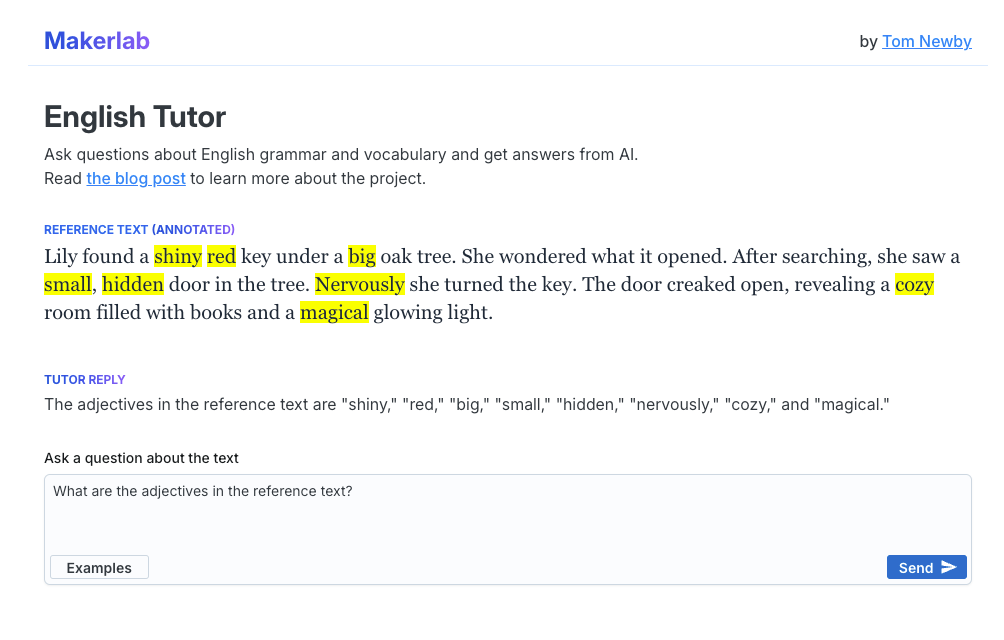 The idea was to have a reference text (i.e. a few sentences) that the user can ask questions about. Instead of "the system" simply answering the question in a chat thread, "the system" can also highlight parts of the reference text if it thinks it would help communicate.
